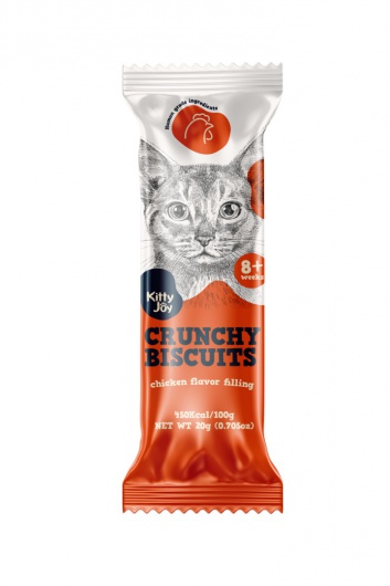 Papildbarība. Kraukšķīgi kaķu cepumi ar vistas garšas pildījumu Kitty Joy 20g (200)